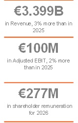 - The General Shareholder Meeting approved the distribution of a dividend amounting to €277 million euros (€2.09 gross per share), equalling the figure of 2025.
